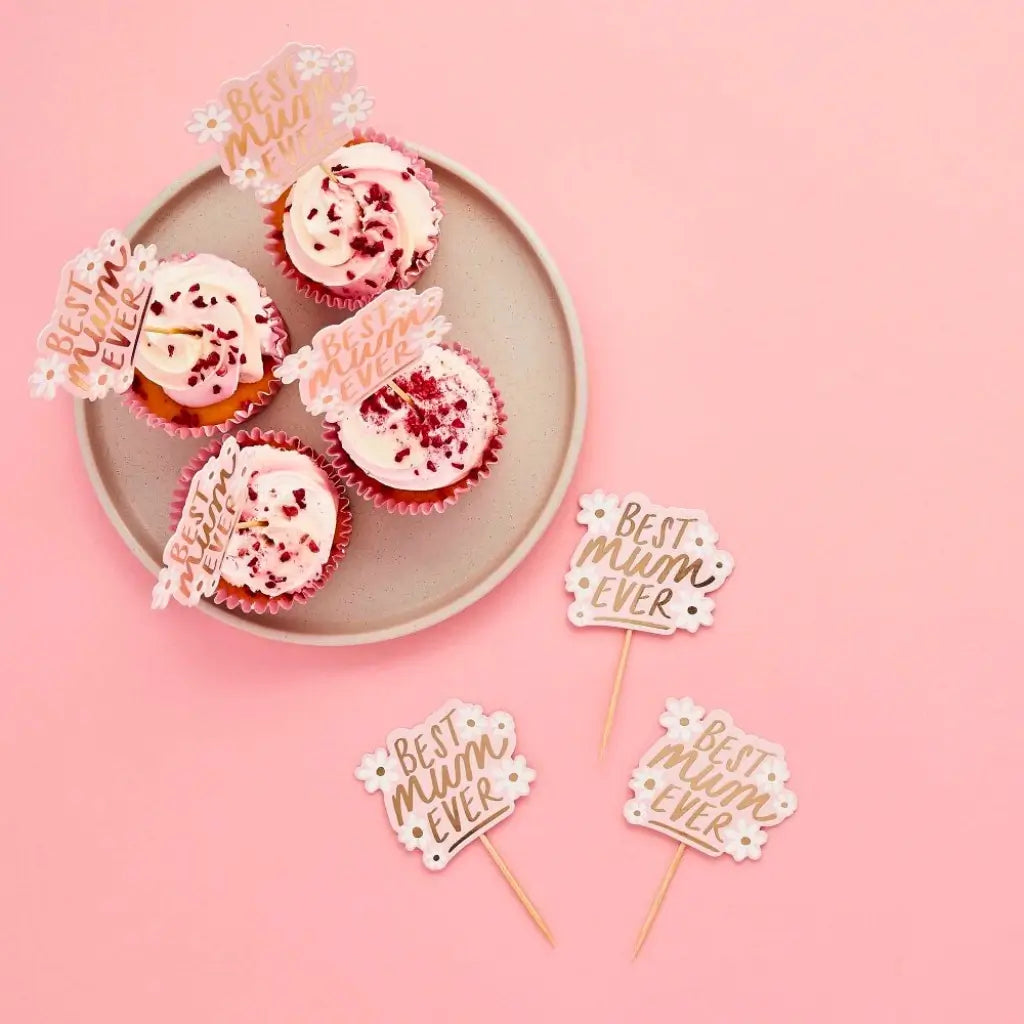 Celebrate Mum in the sweetest way with these charming Best Mum Ever Daisy Food Picks. Featuring delicate pink and white daisy designs with elegant gold “Best Mum Ever” script, these cupcake and cake toppers instantly brighten desserts and party tables.