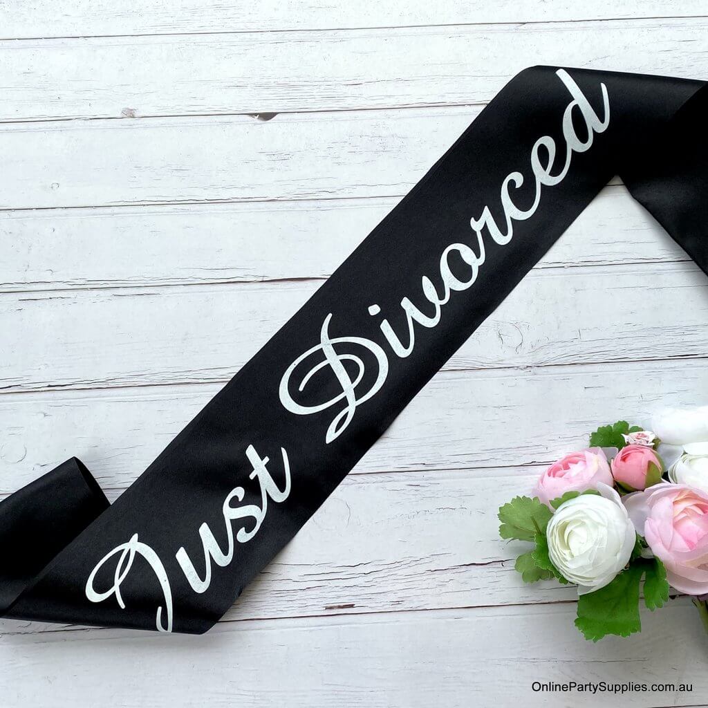 Elevate your divorce celebration with our stylish Black 'Just Divorced' Sash! This chic accessory, featuring eye-catching gold print, is perfect for making a statement during your night out or at a fun-themed party.