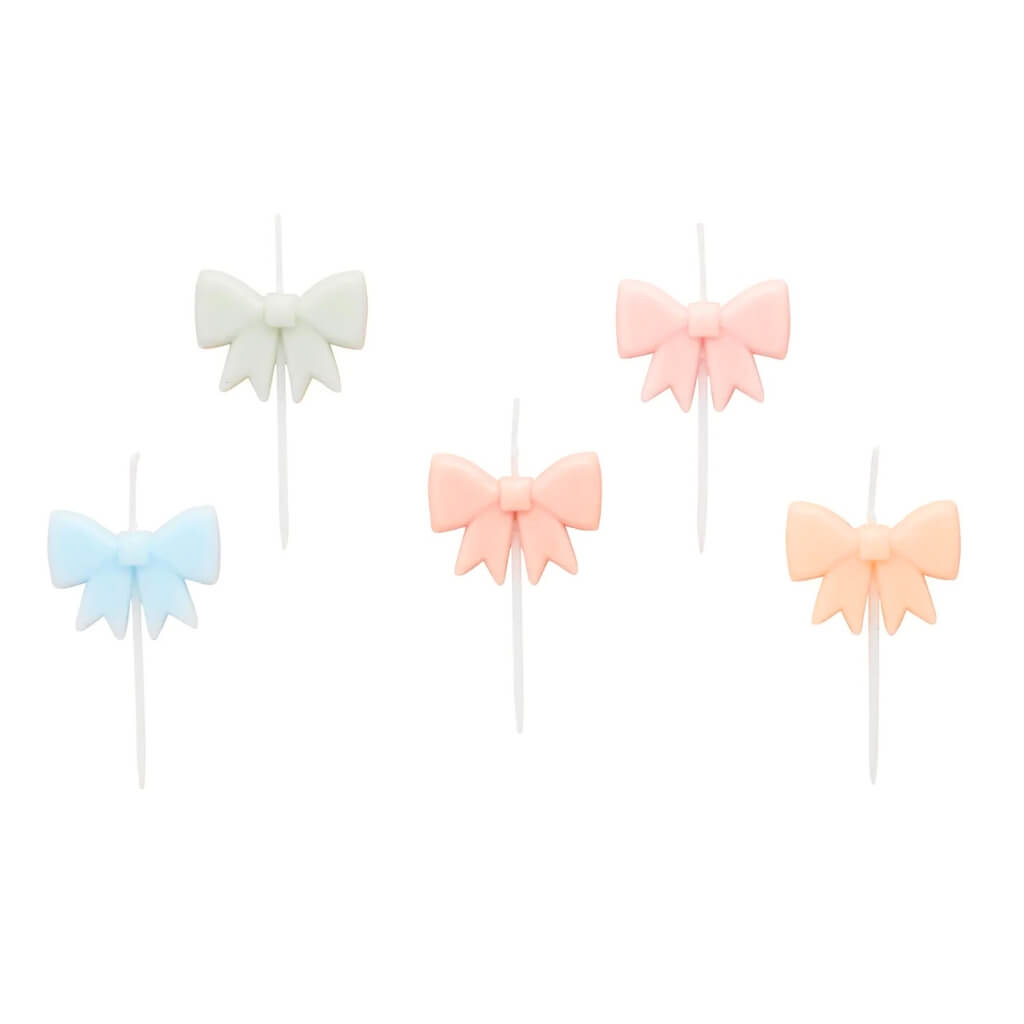 Each delicate bow-shaped candle adds a charming and elegant touch to your dessert display. Featuring soft pastel hues in pink, blue, yellow, mint, and peach, these candles are perfect for tea parties, birthdays, baby showers, bridal showers, and garden gatherings.