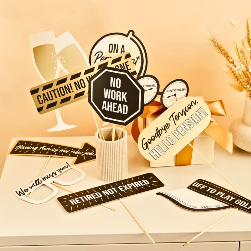Perfect for office farewells, family celebrations, and retirement-themed parties, these props add energy and creativity to every photo. Lightweight and easy to use, they are ideal for mixing, matching, and creating hilarious pictures.