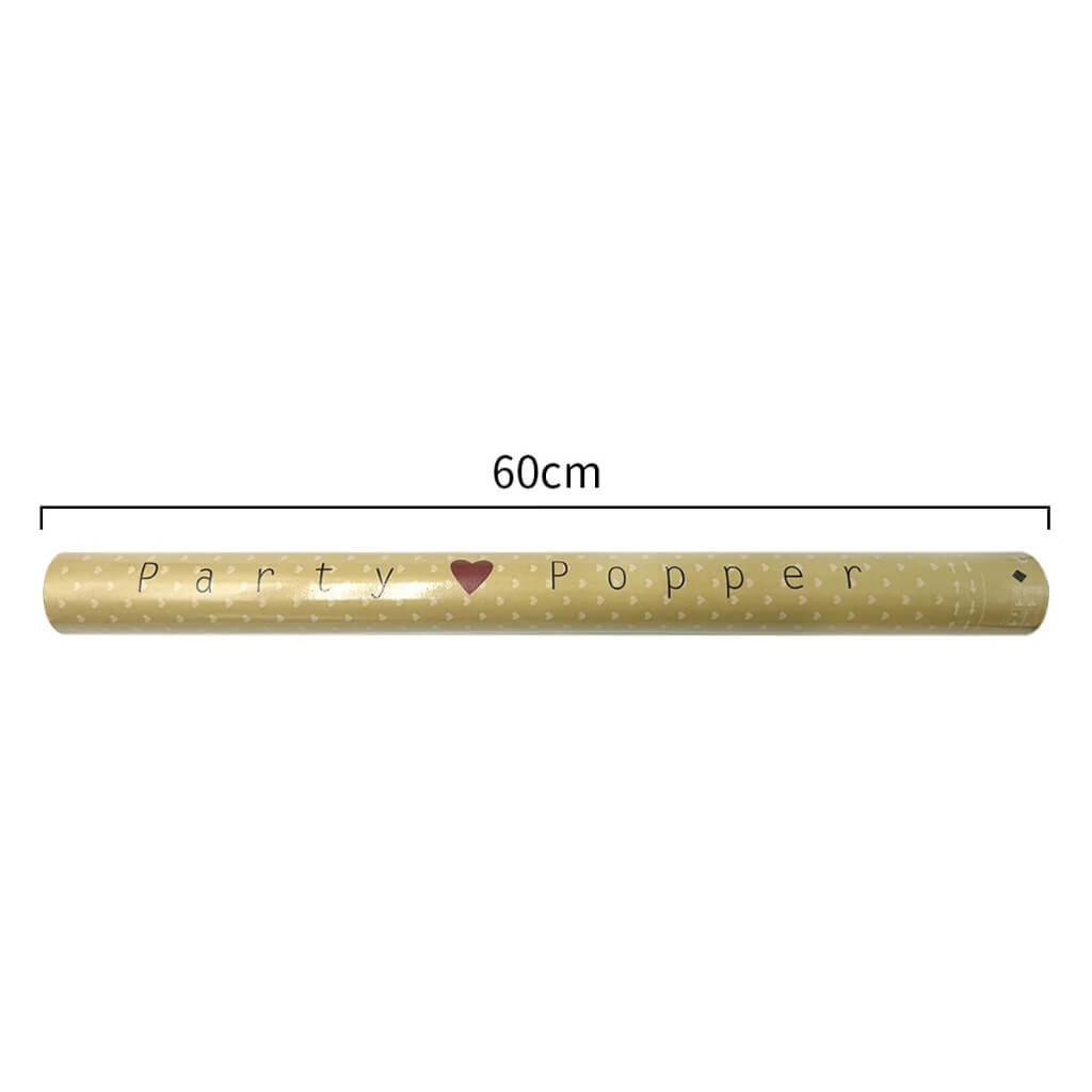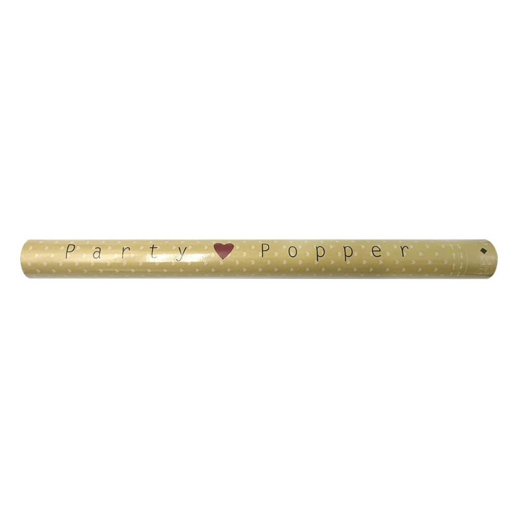This 60cm golden popper is beautifully printed with white heart patterns and filled with red paper heart confetti. Simply twist to release a burst of romantic red hearts into the air, creating a stunning photo moment for weddings, engagements, anniversaries, and Valentine’s Day celebrations.