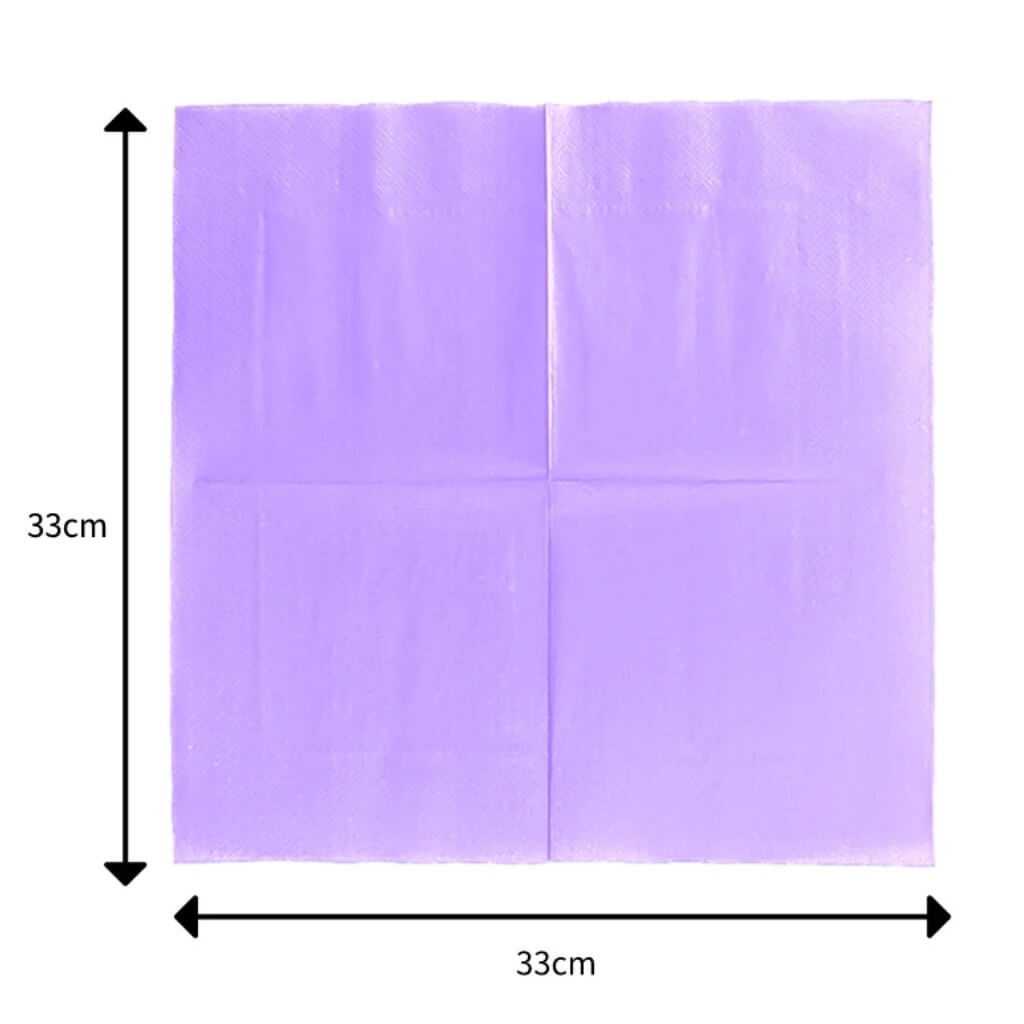 Bring elegance and colour to your table setting with our Light Purple Lunch Napkins – 33×33cm (30pk)