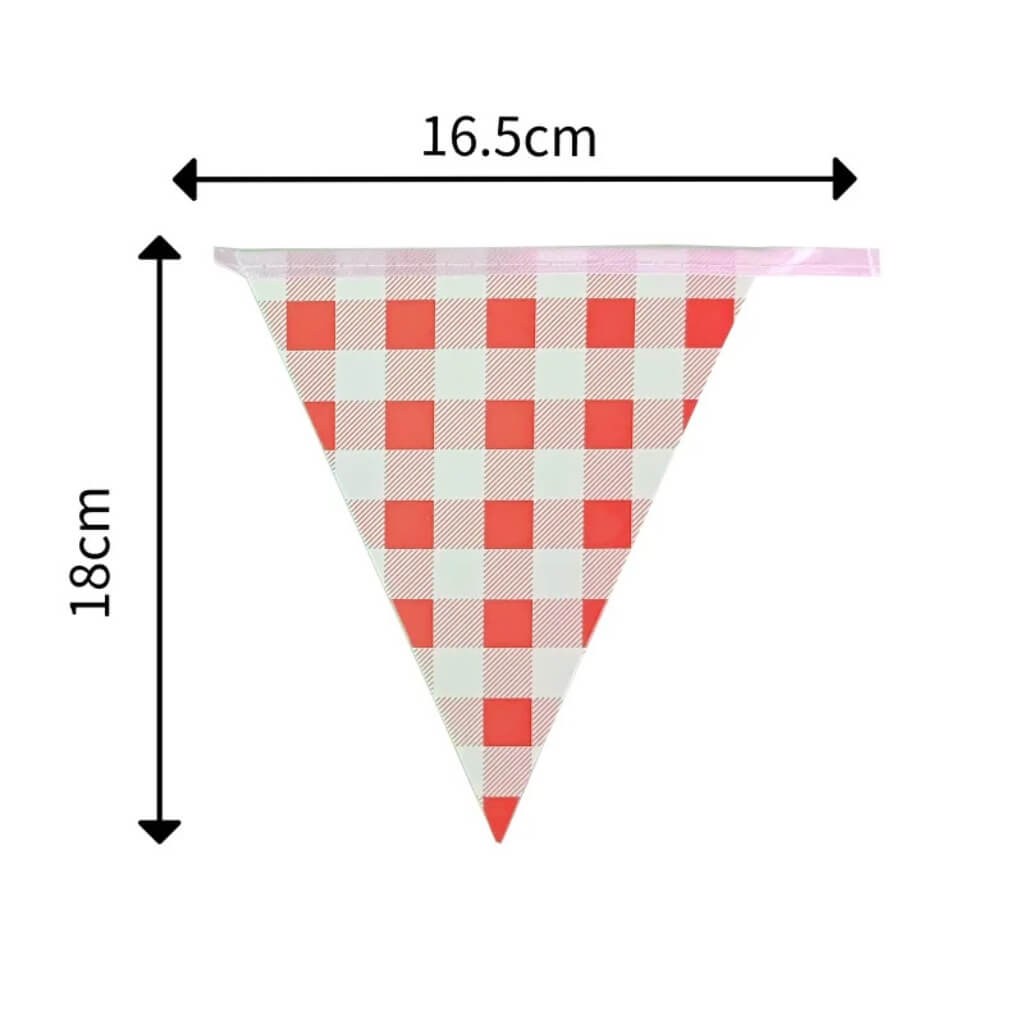 Add a charming country touch to your celebration with this Red Gingham Paper Bunting Banner. Featuring classic red and white gingham flag-shaped pennants, this bunting creates a warm, rustic look that’s perfect for Valentine's Day, Christmas, birthday parties, picnics, BBQs, and festive gatherings.